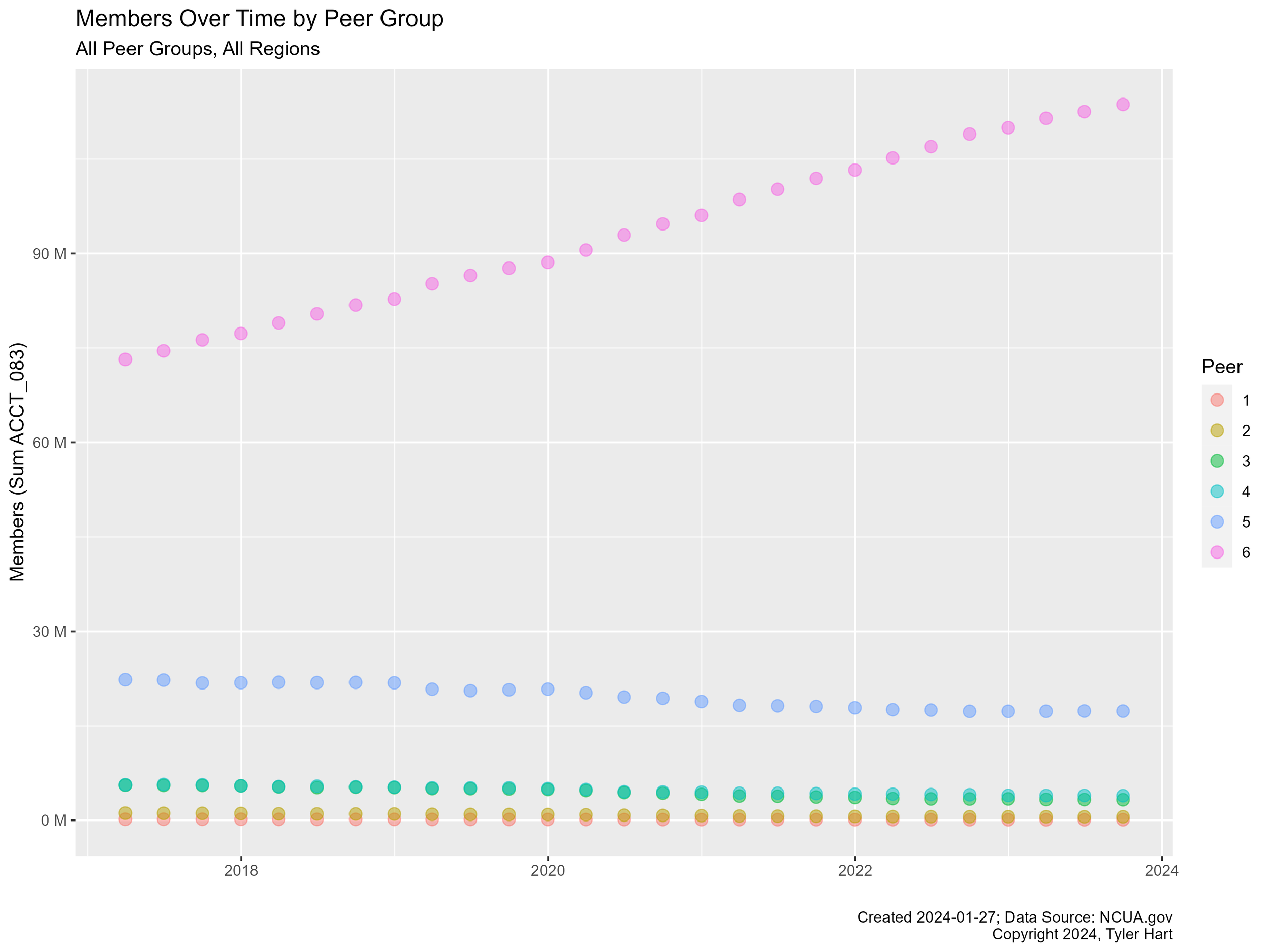 Credit union membership trends, updated with Q3-2023 NCUA call report data.